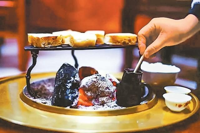 在茶汤熬煮时,因为主人常会用一根小棍在区区罐中搅动,所以天水人又把喝罐罐茶叫“捣罐罐茶”。茶煮好后,主人或独饮,或二人对饮,高高举起区区罐,往小白瓷杯里倾倒,茶汁很浓,扯成一条线。酙好茶后,先不着急饮,而是从旁边的碟子里拿起预先准备好的馍等面点,咬上几口垫底,然后才举而饮之,也就是一口茶汁,很苦很香,要的就是那个味道,初喝此茶的人往往会“醉茶”。庄农人如此这番反复操作,一罐茶喝败了,浑身热气陡增,便精精神神上地了。当然,喝罐罐茶时他们会在火炉上烤上馍,喝茶前可以先小吃几口护胃,也有不少人搭配油香酥和油圈圈,谁尝了都会由衷地发出“美得很”的赞叹吧。